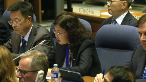中國民用航空局副局長梁楠在大會上發(fā)言(國際民航組織官網(wǎng)直播畫面)